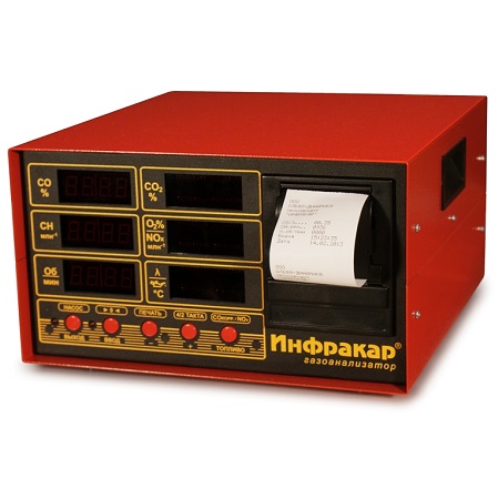Автомобильный 5-ти компонентный газоанализатор «Инфракар 5М-2.01 предназначен для измерения объемной доли оксида углерода (СО), углеводородов (CН) (в пересчете на гексан), диоксида углерода (СО2), кислорода (О2), окислы азота(NOx) в отработавших газах автомобилей с бензиновыми двигателями. Лямбда + Тахометр + RS-232 + Автослив конденсата + Автоподстройка нуля + Работа с ЛТК и мотортестерами. Внесен в Госреестре средств измерений РФ, Республики Беларусь и Казахстан.