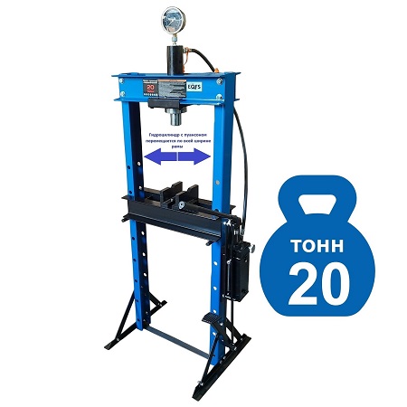 Усилие 20 тонн. Насос — 2 плунжера. Пресс гидравлический. Ручной привод. Гидроцилиндр с пуансоном перемещается по всей ширине рамы. Пуансон 0-145 мм. Рабочее окно 500х1110 мм. Рекомендуется для выпрессовки подшипников, деталей машин, втулок и т.п. в автосервисе. Цвет синий. Доставка по РФ и ТС. Гарантия 12 мес.