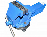 Тиски слесарные поворотные 0°-360° с наковальней. Материал: чугун СЧ20 (серый чугун) ГОСТ 1412-85. Губки сменные 125мм. Ход 110мм. Зажим 3059кгс. Вес: 13 кг. Габариты: 385х180х200 мм. Сделано в Белоруссии.