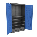 Экран подходит для установки на верстак шириной 1400 мм. Материал перфопанели: холоднокатаная сталь 1 мм. Тип перфорации: комбинированная (квадрат – круг). Покрытие: порошковая краска, цвет синий Ral 5017. Кронштейны - оцинкованные(опция).
