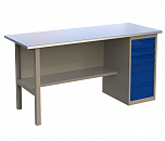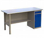 Однотумбовый. Допустимая нагрузка на столешницу 750 кг. Опорные элементы выполнены сварными из холоднокатаной стали. Для выполнения сборочных, ремонтных, слесарных, монтажных и других видов работ на производстве, в сервисных центрах, мастерских, гаражах, а также для обучения технологии в учебных заведениях. Комплектуется полкой-стенкой, расположенной под столешницей для удобного размещения габаритного инструмента и оснастки. Размеры верстака: 855x1596x696 мм. Вес: 68 кг. Поставляется в 4 комплектациях на выбор.