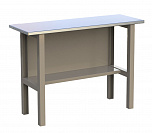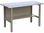 Верстак комплектуется полкой-стенкой, расположенной под столешницей для удобного размещения габаритного инструмента и оснастки. Опорные элементы выполнены сварными из холоднокатаной стали. Все металлические элементы покрыты полиэфирной порошковой краской. Столешница из фанеры толщиной 24 мм, которая покрыта листом оцинкованной стали толщиной 1,2 мм. Глубина столешниц 696 мм. Максимальная масса груза на столешнице - 350 кг.