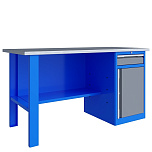 Верстак однотумбовый поставляется в разобранном виде. Нагрузка на столешницу до 600 кг. Стандартный цвет: корпус - серый глянец RAL 7030, ящики и двери тумб - синий RAL 5017. Размеры:855x1600x700 мм. Вес: 81 кг.