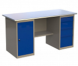 Стол бестумбовый поставляется в разобранном виде (4 места). Нагрузка на столешницу до 600 кг. Стандартный цвет: корпус - серый глянец RAL 7030, ящики и двери тумб - синий RAL 5017. Размеры: 855х1200х700мм. Вес: 40 кг.