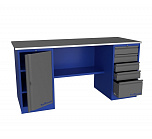 Двухтумбовый. Допустимая нагрузка на столешницу 1000 кг. Опорные элементы выполнены сварными из холоднокатаной стали. Для выполнения сборочных, ремонтных, слесарных, монтажных и других видов работ на производстве, в сервисных центрах, мастерских, гаражах, а также для обучения технологии в учебных заведениях. Комплектуется полкой-стенкой, расположенной под столешницей для удобного размещения габаритного инструмента и оснастки. Размеры верстака: 855x1796x696 мм. Вес: 108 кг. Поставляется в 4 комплектациях на выбор.