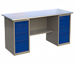 Верстак двухтумбовый 1800 ML0/ML5 поставляется в разобранном виде (4 элемента). Нагрузка на столешницу до 600 кг. Стандартный цвет: корпус - серый глянец RAL 7030, ящики и двери тумб - синий RAL 5017. Размеры (ВхШхГ) 855х1800х700 мм. Вес 105 кг.