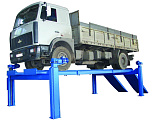 г/п. 10 тонн. Четырехстоечный. Электромеханический. Для ремонта грузовых автомобилей отечественного и импортного производства и автобусов на любой ровной площадке. Привод червячный редуктор, с концевыми выключателями нажимного действия, ограничивающими ход каретки. По отдельному заказу комплектуется установочными рамами. Поставляется в 2 вариантах Стандарт (в помещение) и ТЗ (Для эксплуатации на улице).
