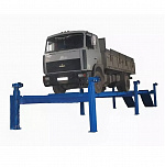 г/п. 15 тонн. Четырехстоечный. Электромеханический. Для ремонта грузовых автомобилей отечественного и импортного производства и автобусов на любой ровной площадке. Привод червячный редуктор, с концевыми выключателями нажимного действия, ограничивающими ход каретки. Рабочие гайки повышенной прочности и износостойкости. Многоуровневая система безопасности. По отдельному заказу комплектуется установочными рамами. Поставляется в 2 вариантах Стандарт (в помещение) и ТЗ (Для эксплуатации на улице).