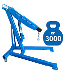 Для профессионального применения. Грузоподъемность 3т. Не складной. Высота подъема 330-2450 мм. Предназначен для подъема и транспортировки автомобильных узлов, агрегатов и любых других грузов как внутри помещения так и на улице. Вынос стрелы регулируется в соответствии с максимальной грузоподъемностью крана – 1000-3000кг. Рабочим приводом крана является гидроцилиндр.