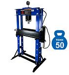 Усилие 50 тонн. Пресс гидравлический. Привод: ручной. Две скорости подачи пуансона. Первая скорость для быстрой подачи штока к рабочей поверхности, вторая (медленно) для выпрессовки. Применяется для запрессовки подшипников, деталей машин и механизмов в гаражах, автосервисах и СТО.