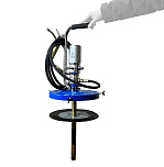Нагнетатель предназначен для раздачи густой смазки из бочек объемом 190 л. Состоит из 2-х независимых и раздельных насосных систем, что предотвращает попадание отработанной влаги компрессора в емкость с перекачиваемым маслом. Длина шланга: 6 м. Давление смазки: 180-405 бар. Коэффициент передачи давления: 5:1. Производительность: 30 см³/с. Длина раздаточного шланга: 305 см. Вес: 15,5 кг.