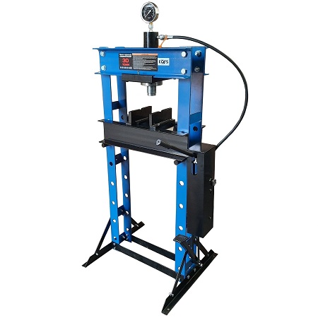 Усилие 10 тонн. Настольный. Ручной. Для запрессовки подшипников, деталей машин, втулок и т.п. в автосервисе, мастерских по ремонту лодочных моторов, велосипедов и т.п. Гидроцилиндр с пуансоном имеет возможность перемещения по всей ширине рамы. Контроль усилия – визуально по шкале манометра. Интервал пуансона 135 мм. Рабочее окно: 400 x 350 мм.