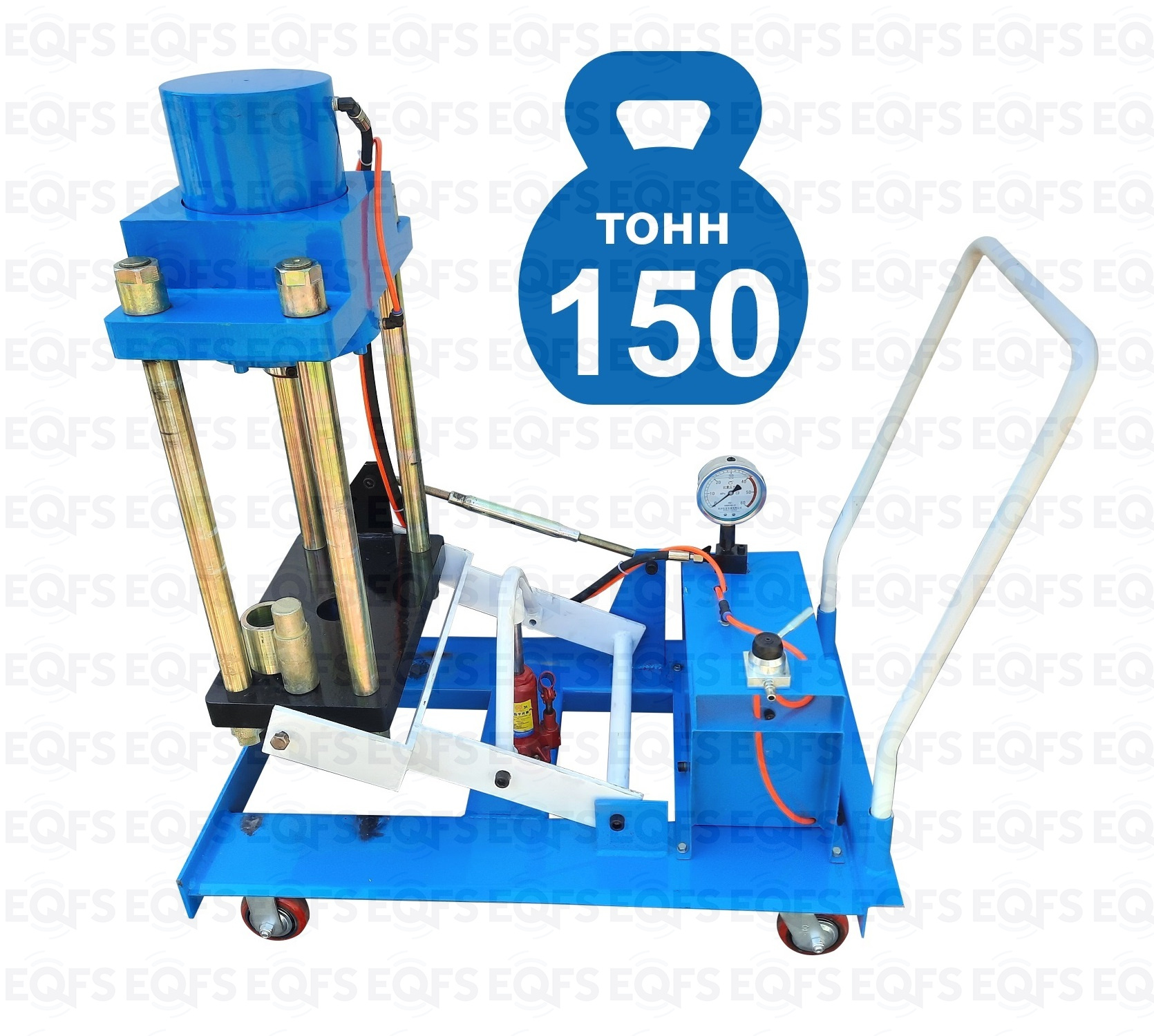 Сокращает время ремонта. Позволяет работать под разными углами 1 человеку. Мобильный. Для выпрессовки шкворней из поворотной цапфы погрузчиков, тракторов, строительной техники, коммерческих и грузовых авто отечественного и импортного производства: MAN, MERCEDES, SCANIA, VOLVO, Корейские и Китайские автомобили. Можно использовать при выездных работах. Пневмогидравлический привод - требуется подключение сжатого воздуха. Рабочее окно 400x320 мм. Усилие 150 тонн.