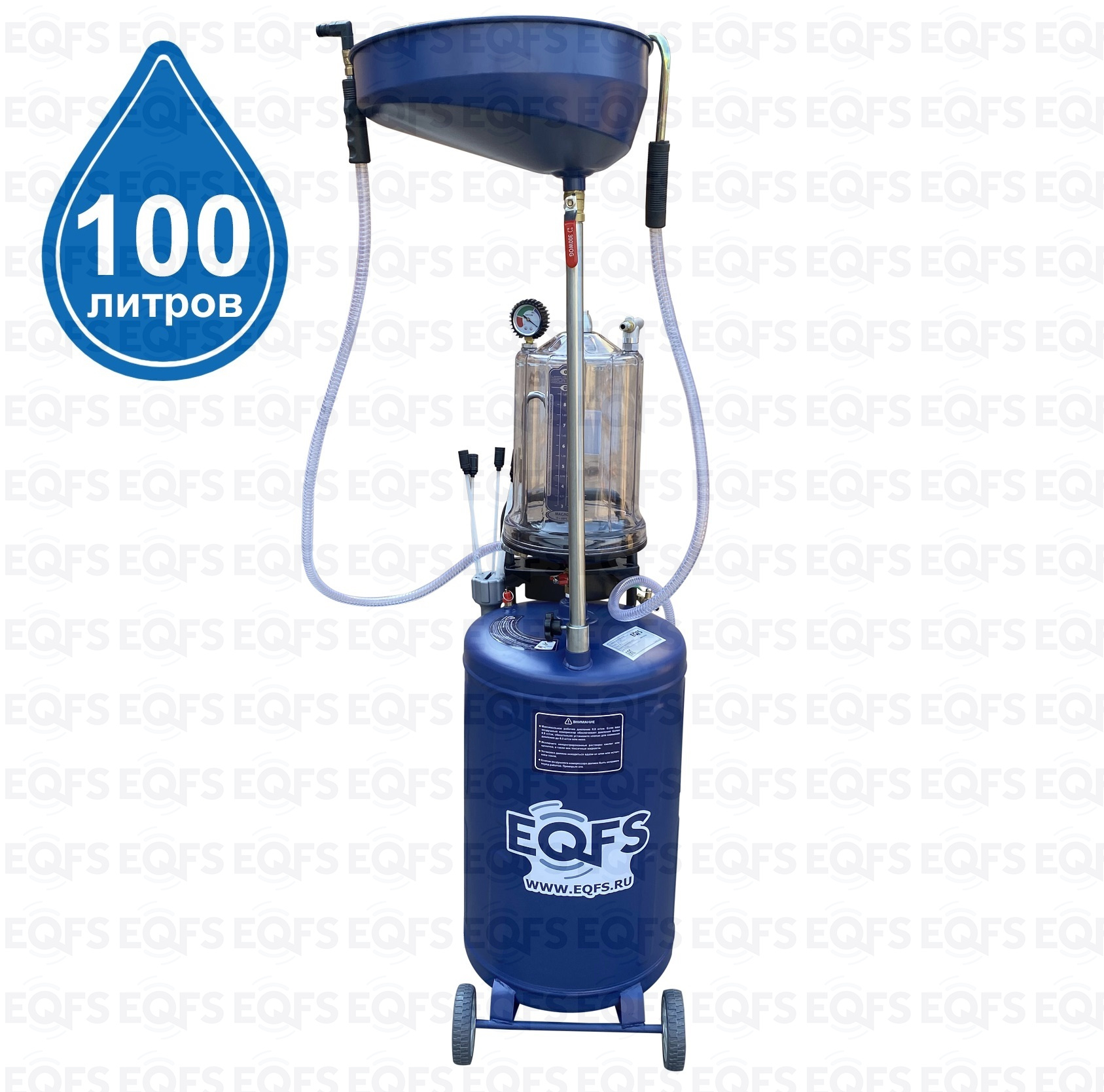 Установка для слива и откачки масла вмещает 100 литров отработанного масла и антифриза. Бак 80л + Предкамера (колба) 10 л. +  чаша (воронка) 10л.