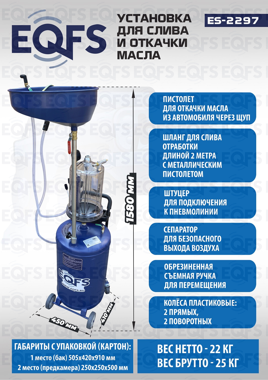 Технические особенности установки для слива и откачки масла щупами ES-2297: