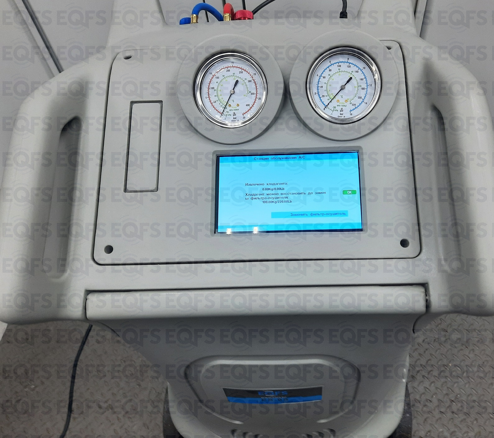 В меню установки есть специальный раздел с простым и понятным интерфейсом для заправки установки фреоном.
