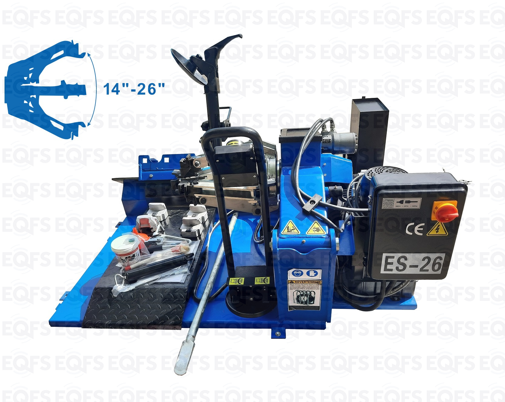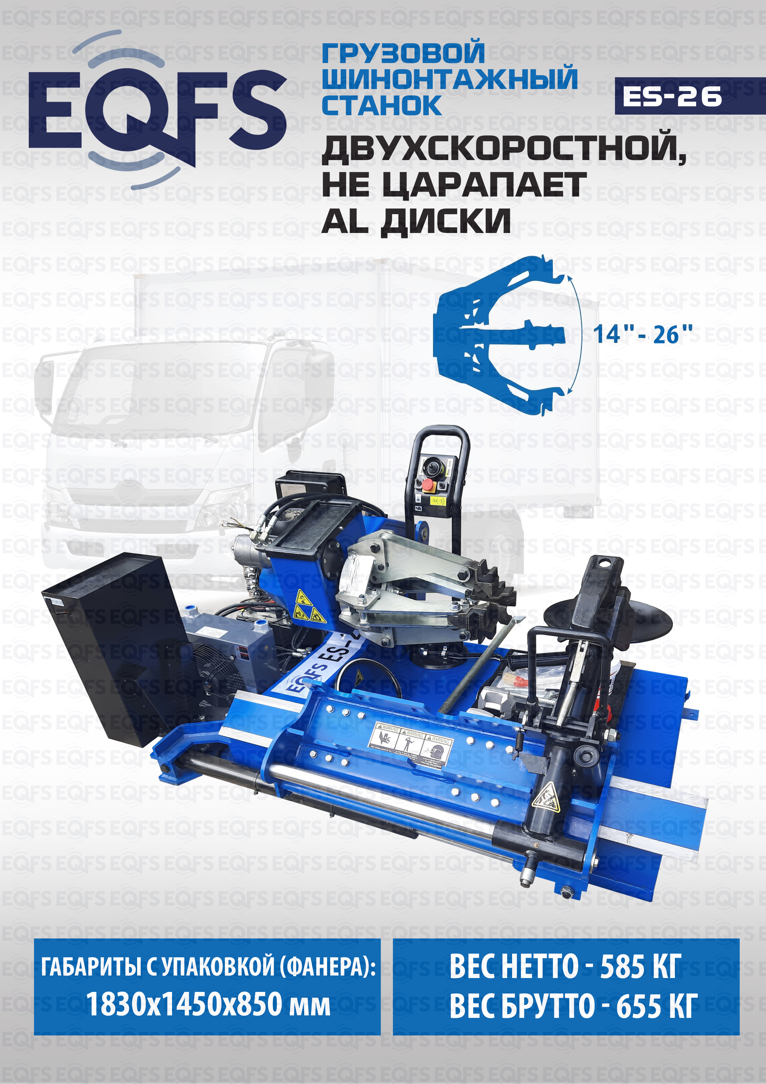 1. ES-26: гидравлический привод зажима колеса, усиленная рама, 2-х скоростной, дополнительные адаптеры для работы с алюминиевыми дисками.