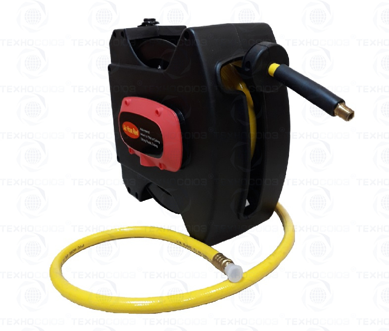 Катушка для подключения пневмоинструмента 8 метров на мойках, шиномонтажах и в автосервисах. Экономит место и шланг не мешается под ногами. Катушка бережет шланги от перегиба и наезда колесами. Для быстрой смены пневмоинструмента. Самосматывающаяся, настенная для воздуха 15м. Подключение – быстросъем ¼”.