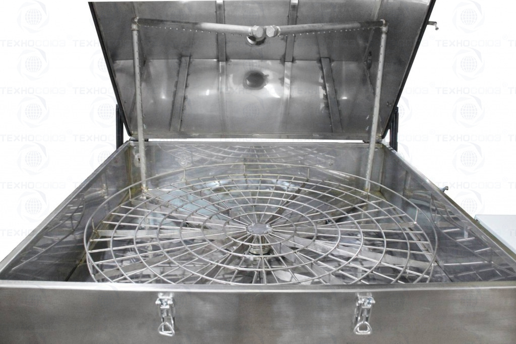 Диаметр корзины - 1400 мм. Грузоподъемность корзины до 400 кг. Высота рабочего пространства – 750 мм. Итальянский насос-2шт. и электромехпривод! Сделано в России. Мойка для деталей ТС1400 AК укомплектована электромеханическим приводом, надежным высокопроизводительным итальянским насосом, качественными фитингами, ТЭНами из нержавеющей стали, европейской электрикой. Корпус изделия выполнен из нержавеющей стали AISI430, толщиной 2 мм.