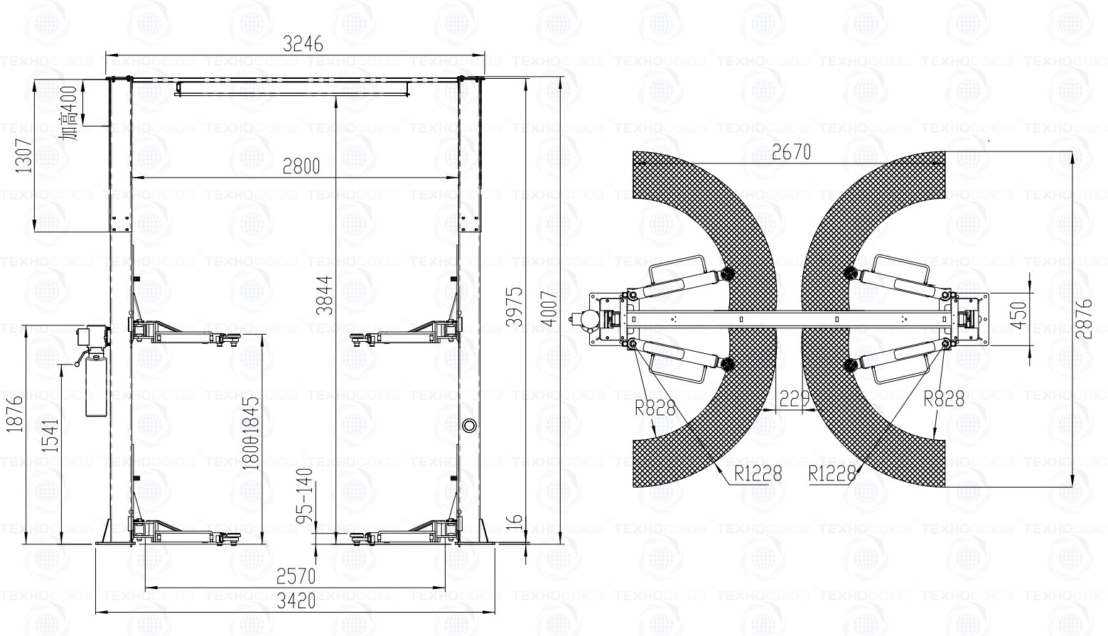 | Расстояние между колонами подъемника, мм. | 2800 |