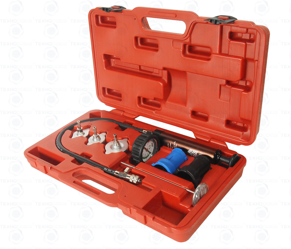 Тестер системы охлаждения предназначен для проверки герметичности системы охлаждения двигателя. Применяется: Mercedes, GM (Buick), Jeep, Peugeot, Subaru, Chrysler, Acura, GM (Nova,Spectrum, Sprint), Mitsubishi, Nissan, Mazda, Toyota, Infiniti, Geo, Suzuki, Isuzu, Ford, Honda. В кейсе 7 предметов.