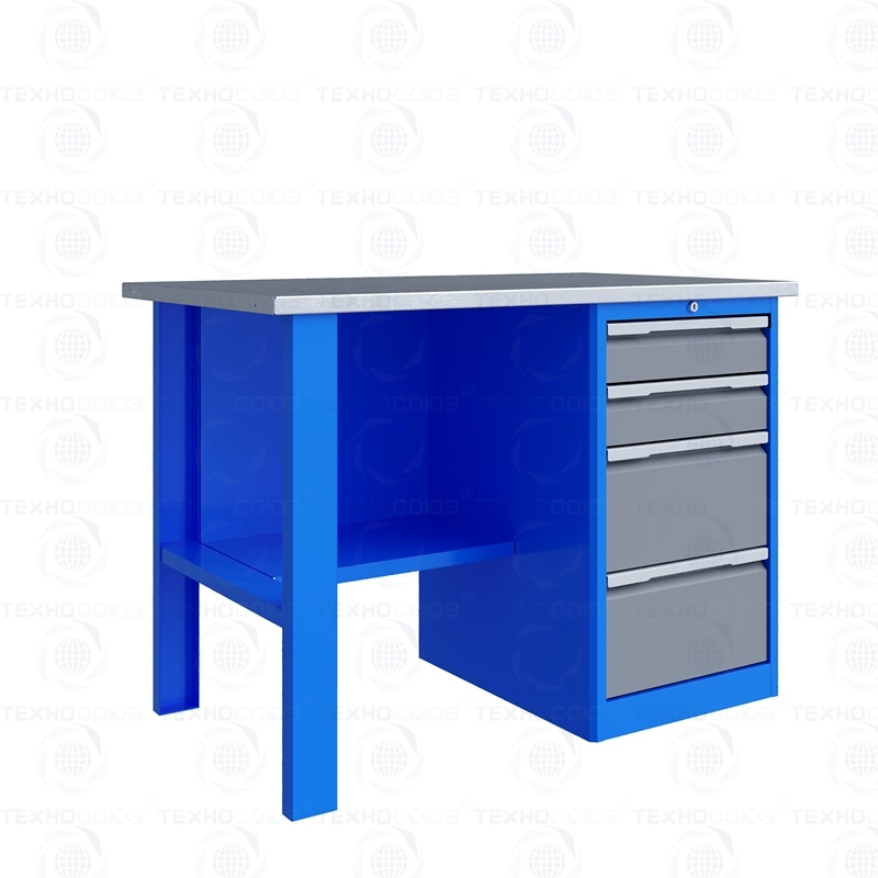 Однотумбовый. Допустимая нагрузка на столешницу 750 кг. Опорные элементы выполнены сварными из холоднокатаной стали. Для выполнения сборочных, ремонтных, слесарных, монтажных и других видов работ на производстве, в сервисных центрах, мастерских, гаражах, а также для обучения технологии в учебных заведениях. Комплектуется полкой-стенкой, расположенной под столешницей для удобного размещения габаритного инструмента и оснастки. Размеры верстака: 855x1196x696 мм. Вес: 73 кг. Поставляется в 4 комплектациях на выбор.